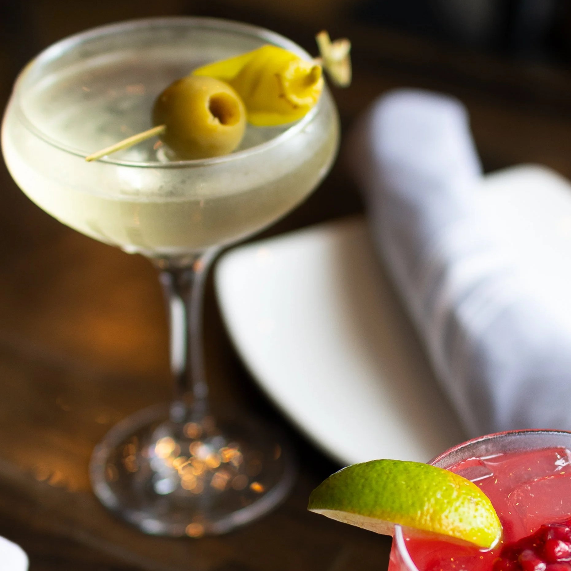 Dirty Vodka Martini with Olive & Pepperoncini Served up